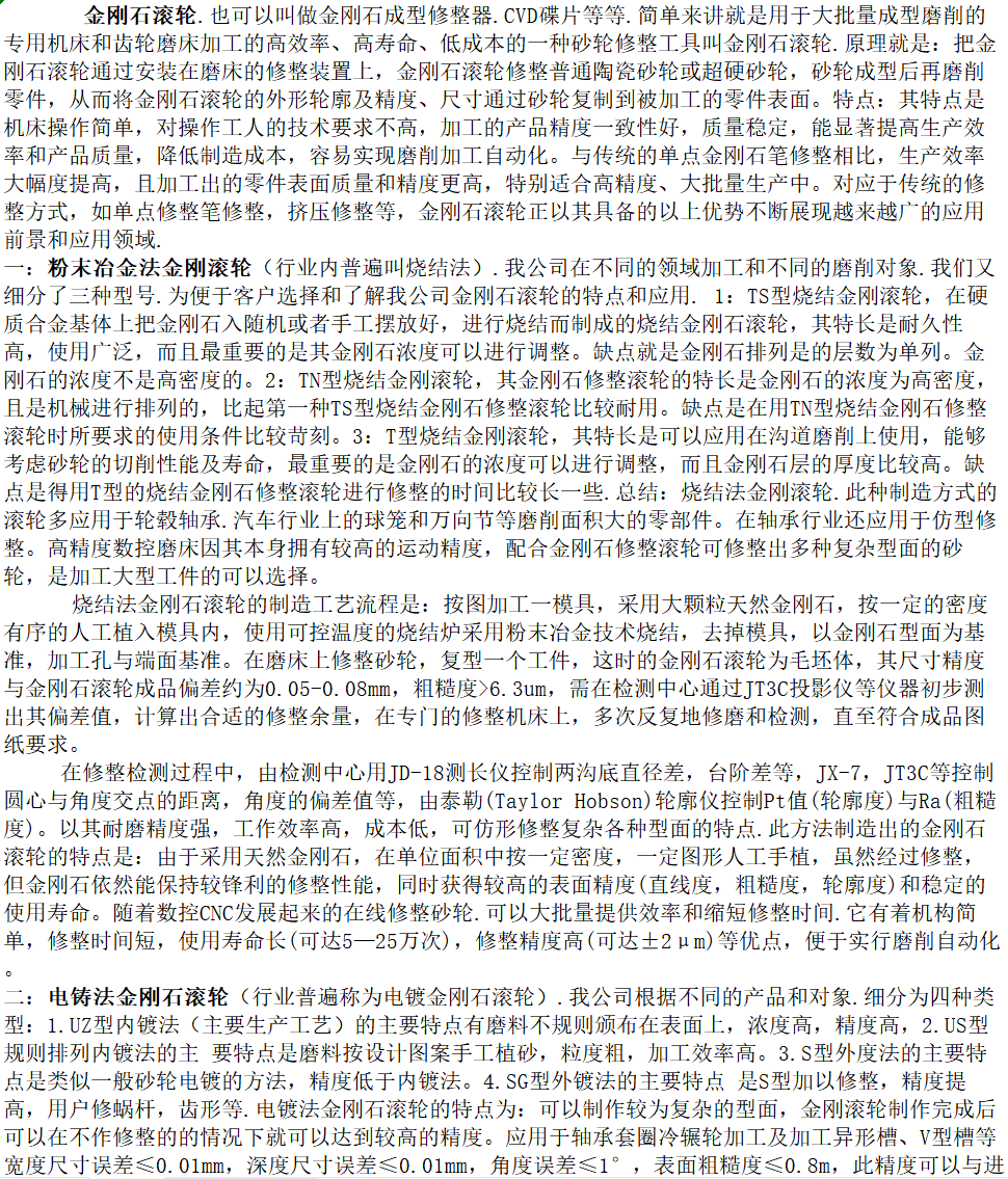公司專業(yè)研發(fā)生產(chǎn)銷售各類金剛石滾輪、陶瓷CBN金剛石砂輪、電鍍CBN精密砂輪、CBN金剛石磨盤、五軸工具磨砂輪等超硬磨具制品.設備先進.工藝技術檢測過硬.替代進口.歡迎您來洽談合作.